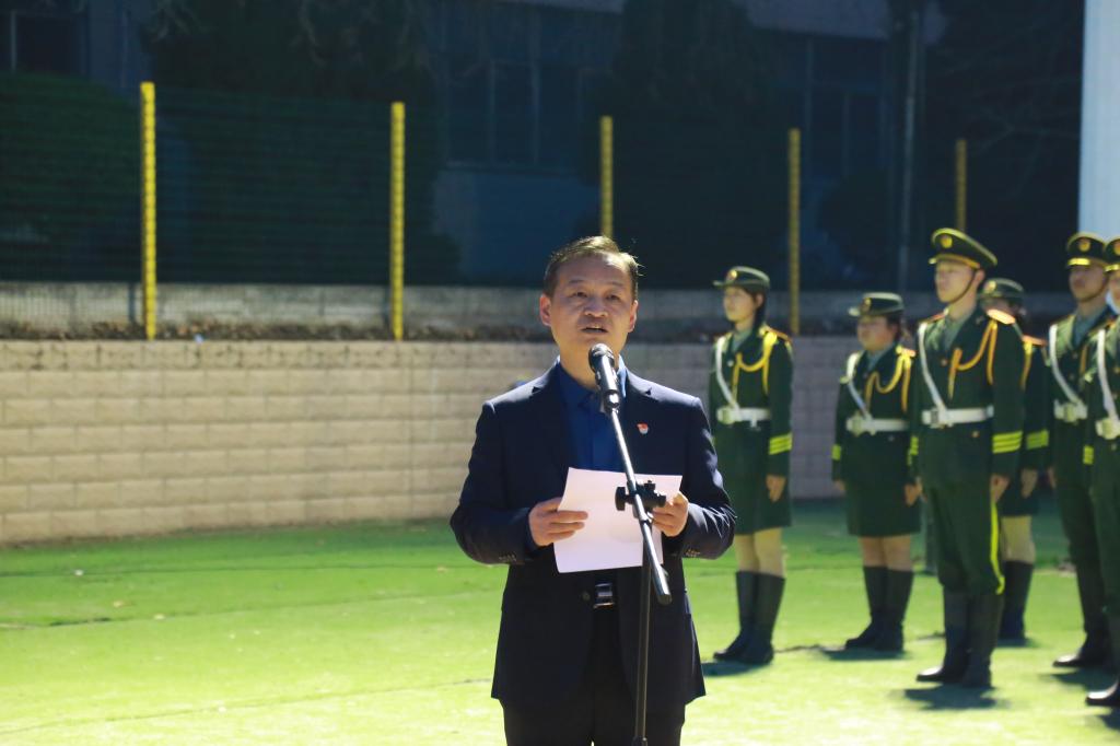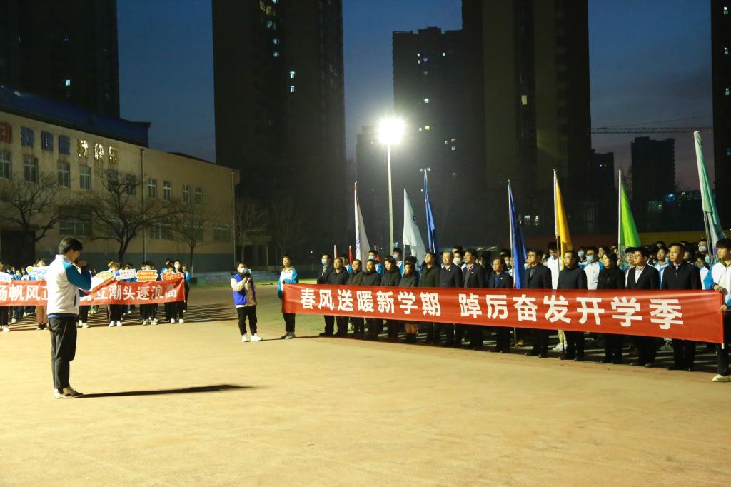 新春伊始、万象更新,在清晨第一缕阳光的沐浴下,本学期第一次“国旗下的成长”主题教育活动于2月20日早晨在渭城校区田径场举行,此次活动的主题为“践行二十大,青年当有为”。党委副书记贺天柱,学工部部长郝军,渭城校区各二级学院党总支书记、学工办主任、机械工程学院全体辅导员及教师代表、团学联学生代表、二级学院学生代表等共700余人参加本次主题教育活动。