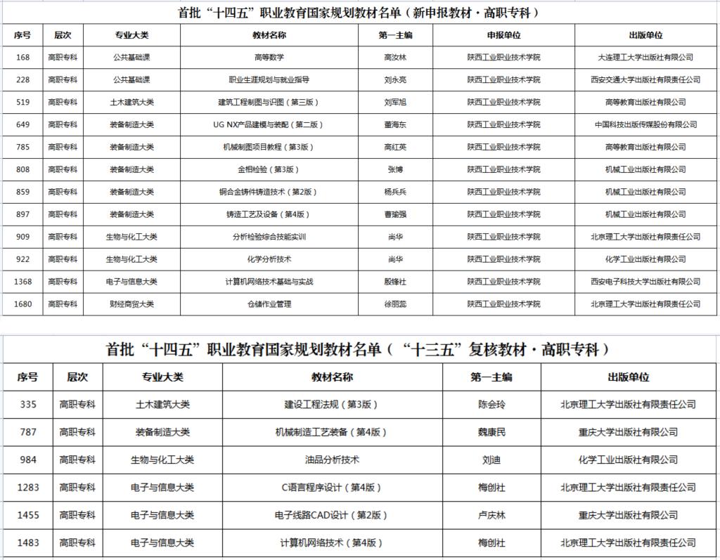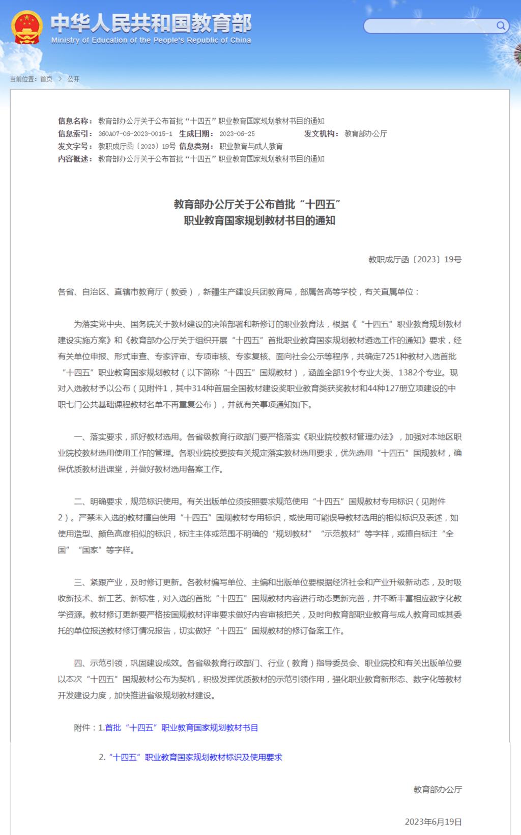 近日,教育部办公厅公布了《首批“十四五”职业教育国家规划教材书目的通知》(教职成厅函〔2023〕19号),mg4355官网共有18本教材入选首批“十四五”职业教育国家规划教材书目。