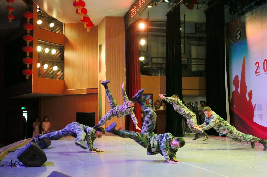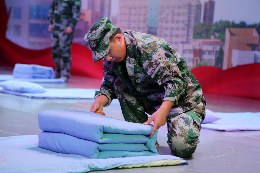 大会在雄壮的国歌声中拉开帷幕,全体师生面向国旗庄严肃立,共唱国歌。以拼搏之姿,扬青春之帆,随着校领导指示下达,军训汇报表演正式开始。教官一声令下,动作整齐划一,迈着铿锵有力的步伐,各位学员进行擒敌拳、战术表演、匍匐刀、内务展示,或杀声震天,豪情满怀,尽显工院学子的时代风采;或军容严整,动作精炼,节奏分明,展现优良严禁的军人风貌。通过10天的磨砺与考验,全体同学的精神面貌、意志品质、集体观念、协作意识在短时间内有了大幅提高,向学院和承训部队交上一份满意的答卷。