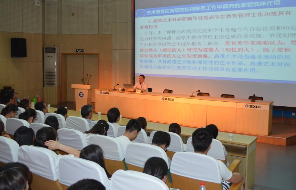 辅导员是大学生教育管理工作的骨干力量,加强辅导员队伍建设、创新辅导员工作模式、提升辅导员工作成效是当前高职院校学生教育管理工作的重中之重。艺术教育是实施美育的最主要途径和内容,对于“立德树人”具有独特而重要的作用,通过研究艺术教育在辅导员工作中的重要载体作用,探索以艺术教育为载体提升高职院校辅导员工作成效的实施路径和策略,对于丰富和创新高职院校辅导员工作的方式和方法,推进高职辅导员专业化、职业化建设,促进高职院校人才培养水平的提升具有重要的现实意义。本次讲座也是我院主持的陕西省高校辅导员工作研究项课题的阶段性成果推广。