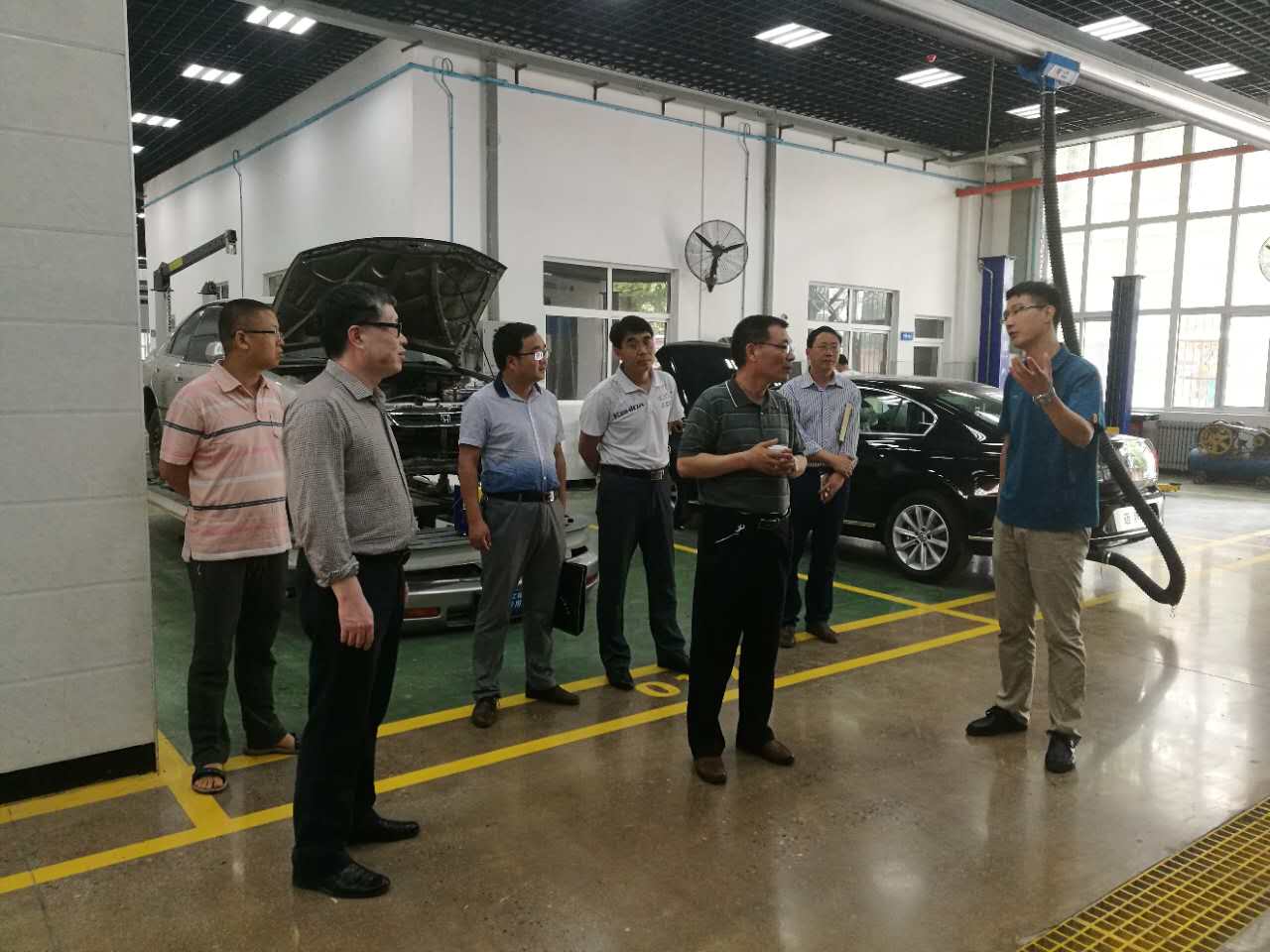 李选芒对来宾的到访表示了欢迎,并对汽车学院的部门概况、师资队伍、专业体系、实训基地建设等方面进行了介绍。双方还就如何进行校内生产性实训基地建设进行深入的交流。会后,骞龙江主任一行实地考察了汽车工程与服务技术训练中心、汽车商务训练中心、汽车机修车间、汽车钣喷车间、汽车电控实训室、汽车冷作实训室、汽车美容服务中心等地。