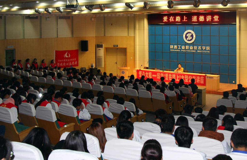 12月1日下午,我院举办“爱在路上”专题道德讲堂,邀请陕西省十大孝子、陕西省优秀慈善志愿者、陕西省慈善协会金星奖章获得者、“爱心大姐”志愿者服务队邱华女士与师生分享自己13年如一日践行着爱心事业的心路历程和感人故事。文汇路街道办事处工会主席吴艳、咸阳市渭城区民政局李瑞娟,陕西中医药大学、西藏民族大学、陕西能源职业技术学院、陕西邮电职业技术学院等兄弟院校志愿者团队代表及我院师生400余人聆听了报告,宣传部副部长张彬主持报告会。