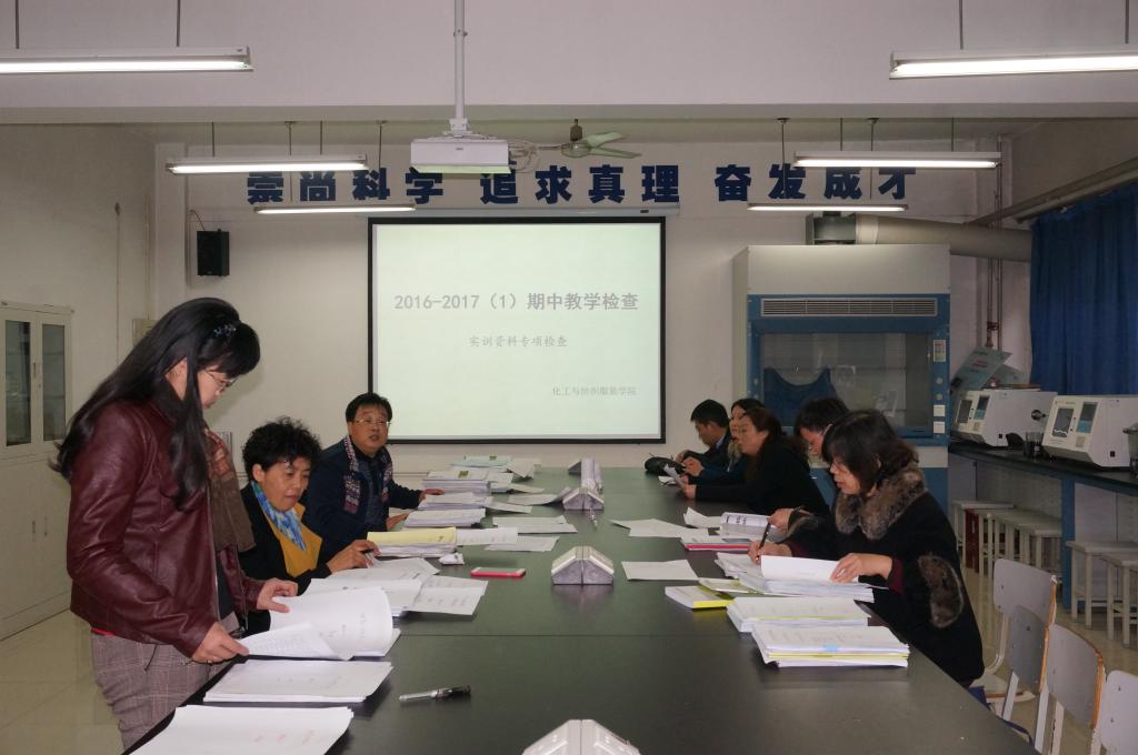 为了进一步规范实训教学管理工作,切实抓好实训教学工作的基础环节,11月11日,化工与纺织服装学院组织开展期中教学实训资料专项检查。由教务处陈开君、化工与纺织服装学院党总支书记贾格维、院长赵明威、实训中心主任胡蓉及全体教研室主任组成的检查组对该学院上学期后十周及本学期的实训教学资料进行了集中专项检查。