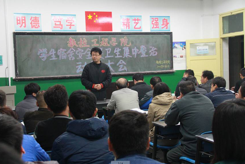 同日,数控工程学院召开学生宿舍安全及卫生集中整治动员大会,要求全体辅导员班主任高度重视,积极参与,确保取得实效。会后,对学生宿舍进行了全面自查,对在检查中发现的问题进行现场整改。