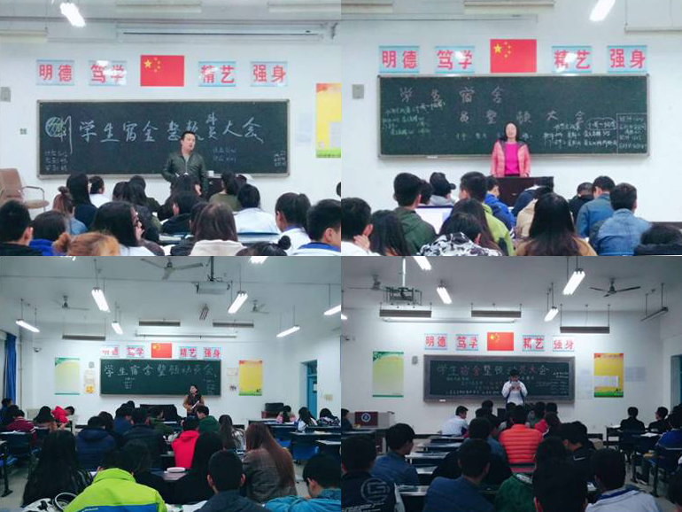 6日晚,信息工程学院召开学生宿舍专项治理工作动员会,开展为期六周的学生宿舍安全及卫生集中整治活动,并以学生班级为单位,传达学习本次专项治理工作的相关要求、检查标准及奖惩措施。