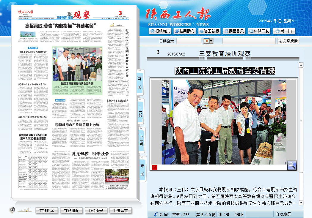 陕西工人报—陕西工院第五届教博会受青睐