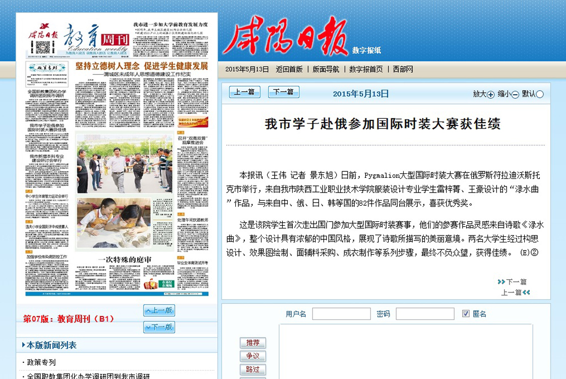 咸阳日报—我市学子赴俄参加国际时装大赛获佳绩