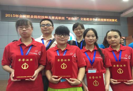 7月3日,2015年全国职业院校技能大赛高职组“亚伟杯”文秘速录赛项在天津职业大学圆满落幕,经过7个小时的激烈比拼,我院教师来保卫、赵娇指导的,文秘1301班张蓉、刘青、张娟、周艳组成的代表队荣获团体三等奖。