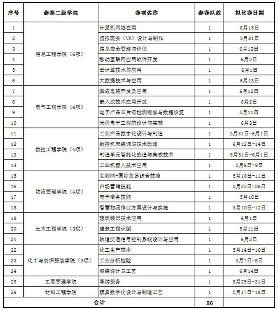 日前,陕西省职业院校技能大赛全部赛项圆满结束,我院选派的88个参赛队,参加省赛39个赛项比赛,其中对接国赛赛项34项。经过激烈比拼,最终我院26支参赛队将代表陕西省参加2019年全国高等职业院校技能大赛26个赛项角逐。根据省教育厅安排,由我院承办的11个省赛赛项将于4月27日至6月13日对全省参加国赛的选手进行集中训练。