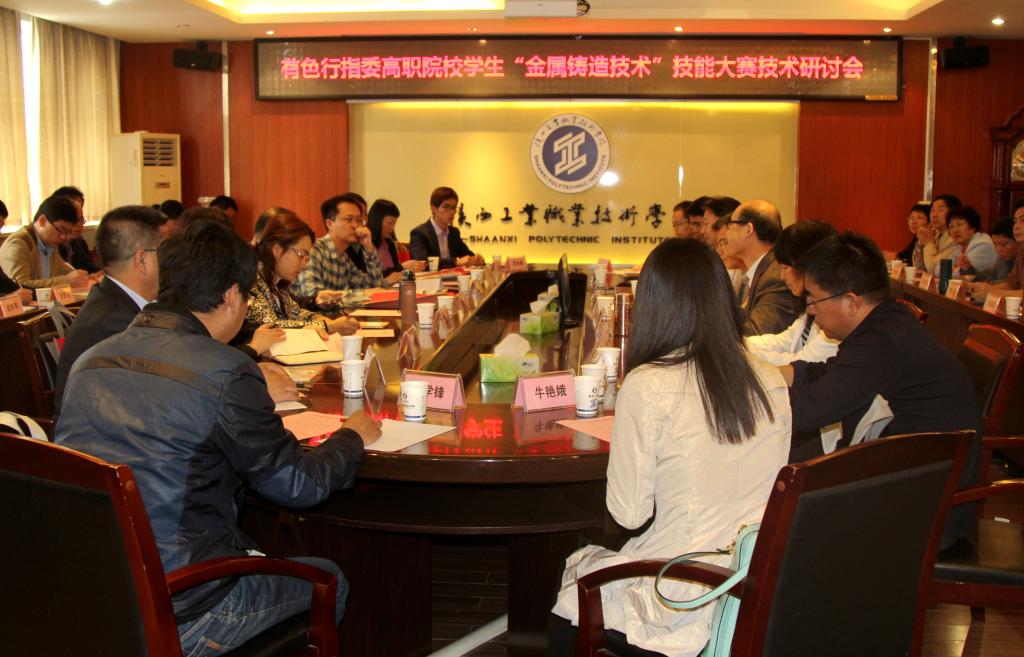 4月25日,有色行指委高职院校学生“金属铸造技术”技能大赛研讨会在我院崇文楼九层第一会议室召开。有色行指委总经理丁跃华、经理助理祝丽华、培训部干事房明,我院党委副书记、副院长刘永亮,副院级调研员王晓江,教务处副处长刘军旭,材料工程学院院长罗怀晓、党总支副书记郭旭华及 18家兄弟学院的40余人参加了会议。会议由王晓江教授主持。