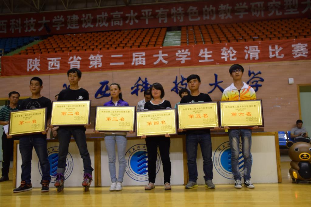 5月23至24日,由省教育厅举办的第二届陕西省大学生轮滑比赛在陕西科技大学举行,来自省内28所院校的300多名队员参加了比赛。我院选派了22名队员参加了两个组别6个项目的比赛,并获得了甲组双人花式绕桩第一、第二名,乙组双人花式绕桩第一名,男、女单人花式绕桩,男、女花式刹停的第三名以及其它项目5-8名的优秀成绩,累计获奖21奖。经过两天的激烈比赛,我院代表队荣获男子团体第三名、女子团体第三名、团体总分第二名的优异成绩,杜利军,张垚2名队员获得了“优秀运动员”称号。