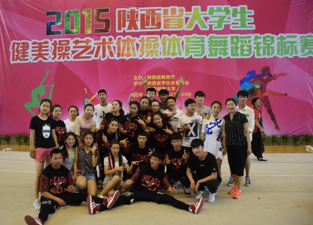 5月27日,由省教育厅主办,省学生体育协会、西安邮电大学承办的2015年陕西省大学生健美操、艺术体操、体育舞蹈锦标赛在西安邮电大学长安校区体育馆举行,来自全省30多所高校的代表队参加了比赛。我院代表队在比赛中表现出色,共获得2个一等奖、1个二等奖、7个三等奖的优秀成绩,王英英老师荣获“优秀教练员”称号。