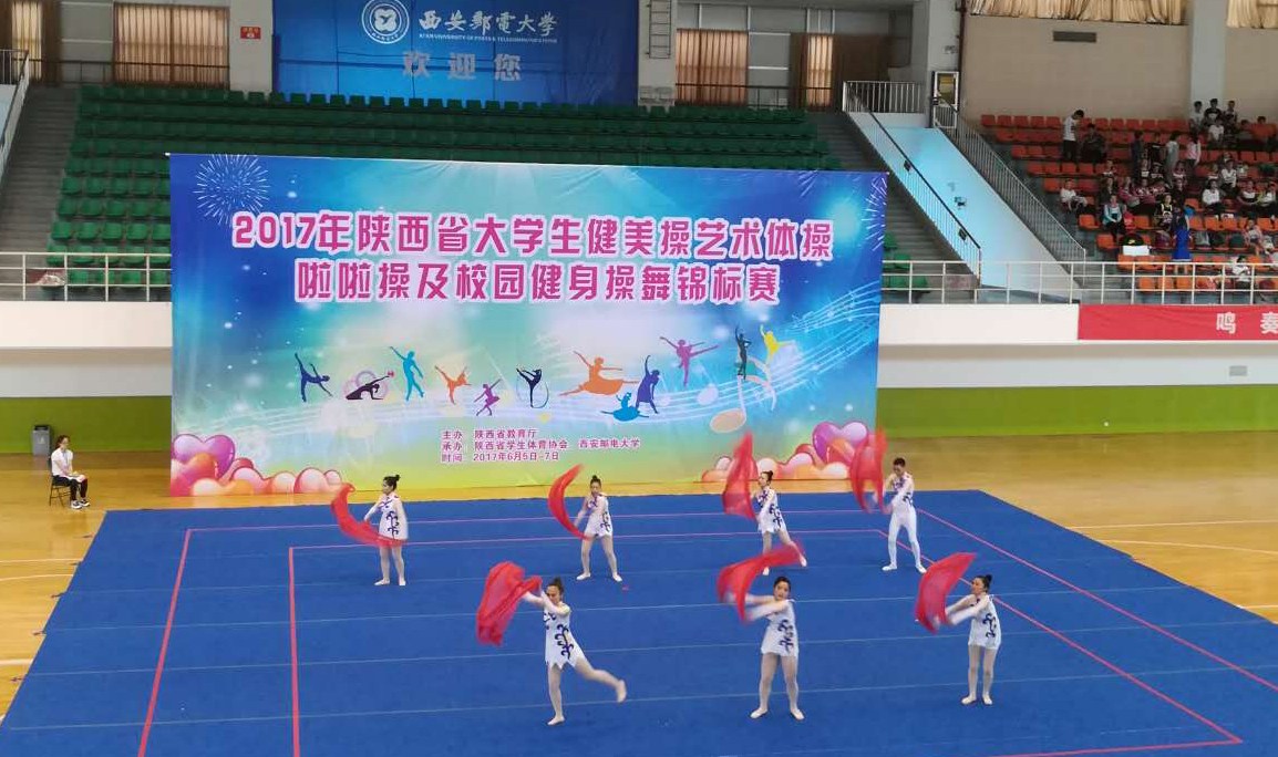 6月5日至7日,2016-2017年陕西省大学生健美操、艺术体操、啦啦操及校园健身操舞锦标赛在陕西邮电大学举行,来自全省45个院校代表队伍参加了此次比赛。由我院体育部部长许耀锋领队、王英英、郝冰花两位老师指导的学院健美操队顽强拼搏、奋勇争先,分别斩获高职高专组一等奖两项、二等奖三项、三等奖三项。此次获奖是我院倡导阳光体育运动,推行素质教育的又一成绩。
