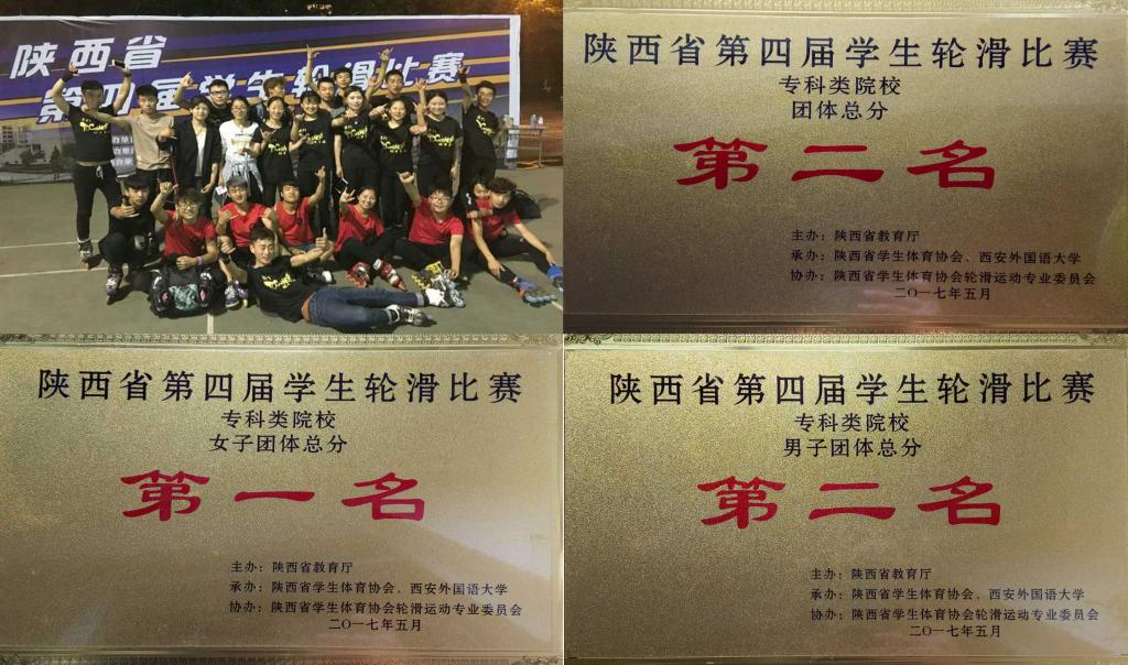 5月15日,陕西省第四届学生轮滑比赛在西安外国语大学落下帷幕,来自全省44所院校的447名运动员参加了本次比赛。我院轮滑代表队一行25人在领队许耀锋、教练员史军峰、崔吉洋的带领下,经过三天的激烈角逐,取得了各类奖项共计35项,其中个人第一名奖项7项,最后获得男子团体第二名,女子团体第一名,总团体第二名的好成绩。